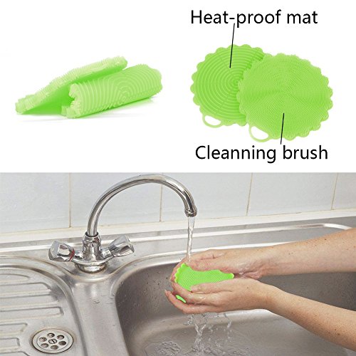 Why choose Albabara professional silicone brush? Multi-Functional Use Range: You can use our silicone brush for dishwashing,scrubbing pot/pan,washing fruitsvegetables,cleaning your facebody, etc. Both sides of this silicone brush are usable: One side with soft bristles is easy to reach glasses and cups corners,the other side owns Heat insulation mat design. EASIER TO USE AND CLEAN: Our silicone brush is extremely easy to clean,just rinse with water or put it in the dishwasher, it will has no residue. Bearing broad temp erature range: The TEMPERATURE RANGE of our silicone brush is from -76℉- 500℉,high quality heat resistant silicone. User-friendly and Ergonomic: The weight and size of our silicone brush are very proper and you will feel very comfortable when use it. This silicone dish sponge looks new even after a long time use. 100% Satisfaction Guarantee: If you receive a product of which package or flaw on silicone brush,not from abuse,please contact us and we will replace it or refund you! Note:Due to differences between monitor displays, actual color may vary slightly from image. Package includes: 4 x silicone dish sponge 0