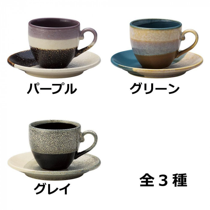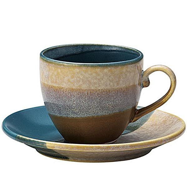 落ち着いたカラーのカップとソーサーのセットです。