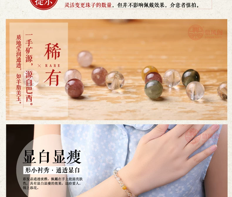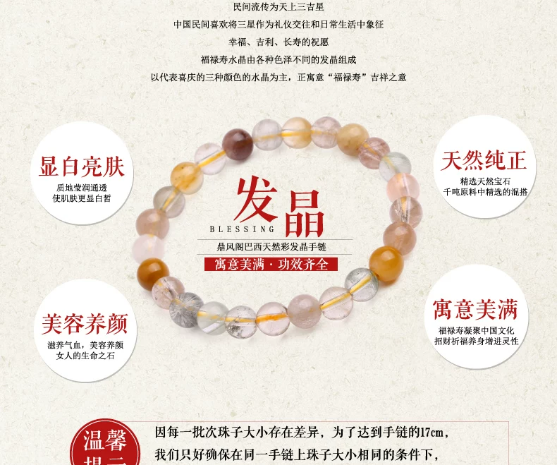 Specifications: color hair crystal diameter of about 6.5 ~ 7.5mm, a circumference of about 17 cm