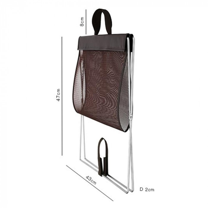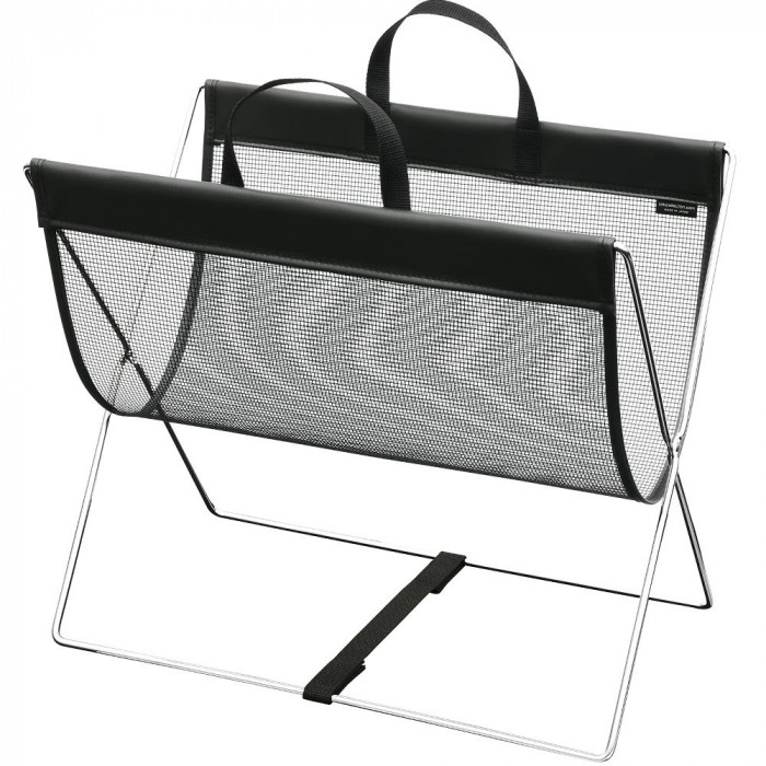 | 持ち運びやすい持ち手付き。本体は中の物がわかりやすいナイロンメッシュを使用し、レザー調のPVC(塩ビ)をあしらったカジュアルな雰囲気の手荷物入れ。 |