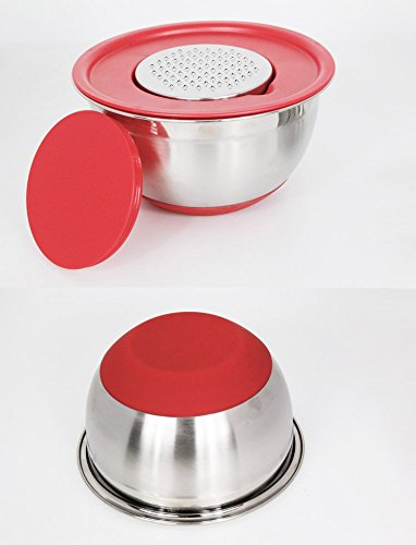 King International Mixing Bowl Set With Lids, Non-Slip Surface, Measurement Marks and 3 Grater Attachments -Stainless Steel Mirror Finish