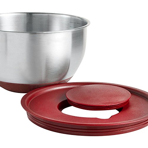 These bowls aren't ordinary mixing bowls. They are stainless steel, anti slip, with bowl covers, easily stackable and have a volume measuring guide inside