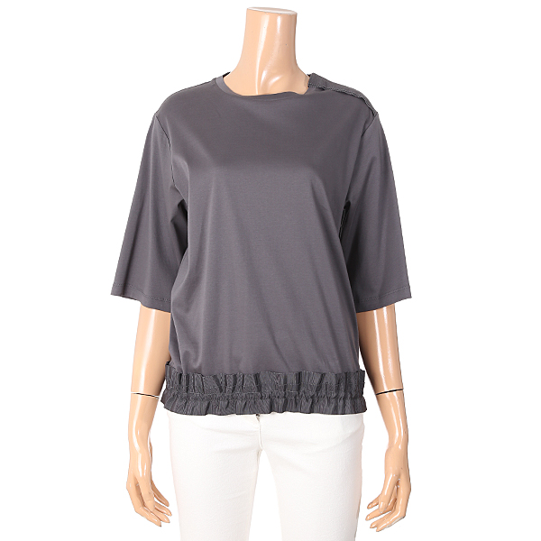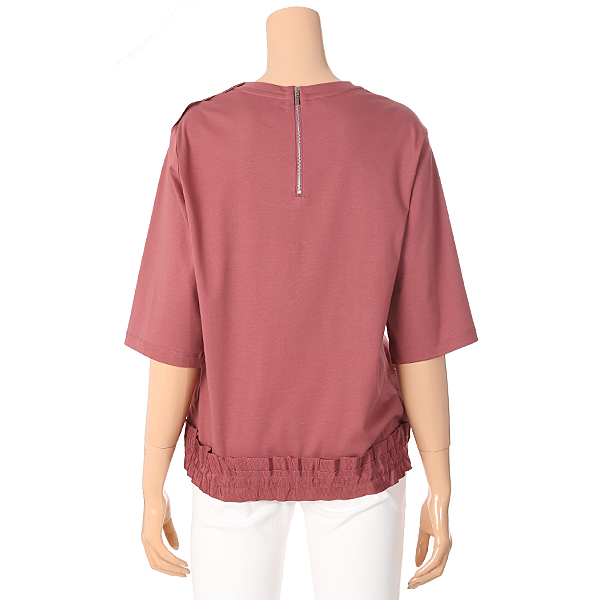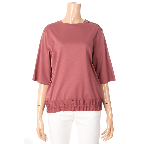밑단에 골테이프로 포인트를준 면 라운드 티셔츠