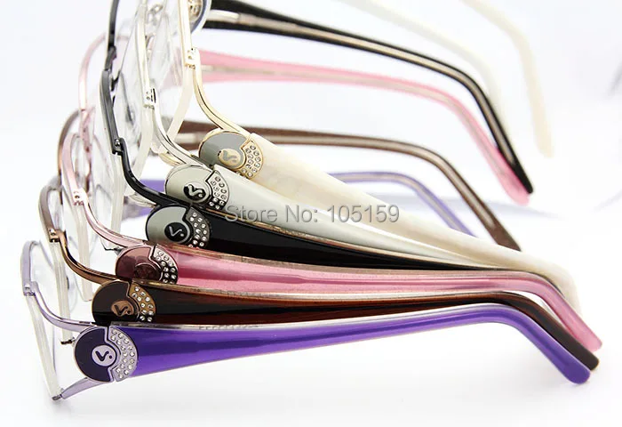 Frame Material: Stainless steel Temple Material: Handmade Acetate Size: 55-16-132 frame color : Black/Brown/Pink/Purple/Silver/Gold Pads: Silicon face shape match : other usage : for reading glasses Decoration: Diamonds Place of Origin: cn;zhe is_customized: Yes