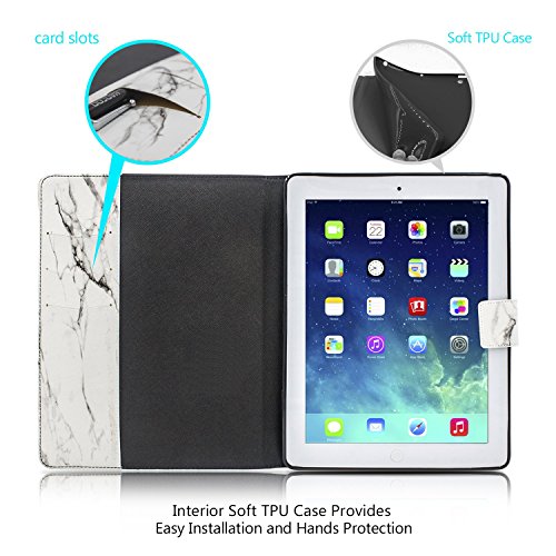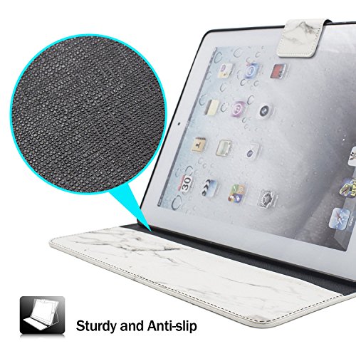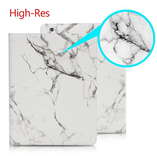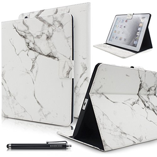 iPad Case, iPad 2/3/4 Case, HAOCOO Stylish Art Printed Flip PU Leather Stand Protective Case with Card Slots [Buckle for Secure Closure] for Apple iPad 2/3/4 Generation (9.7 Inch) (White Marble)