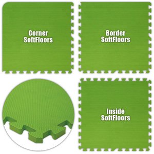 Studio : Alessco Publisher : Alessco Binding : Health and Beauty Product Description Floor Pad, SoftFloors, Lime Green, 20' x 28' Set, Total Sq. Ft.:560The most comfortable and affordable flooring you can buy for Residential or Commercial or Industrial applications. SoftFloors are a closed cell EVA Foam Rubber that is Lighweight, Portable, Waterproof, Soundproof, Aerobic, Shock Absorbent, Insulating, etc. Components: Corner: 4, Border: 40, Inside: 96 Packaging information: Total Pieces: 140, Total Cartons: 6, Full Cartons (25 pcs): 5, Full Carton Weight (lbs.): 31.25, Partial Carton (Total Pieces): 15, Partial Carton (Product photo may not exactly match the product offered for sale. Please refer to the product description. 0