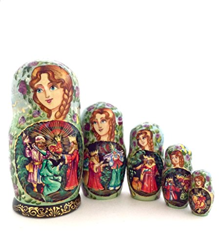 -. Title : Unique Russian Nesting dolls Fairytale "The Golden Cockerel" Hand Carved Hand Painted 5 piece set 7" Tall