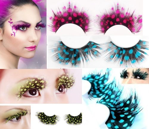 Hitece@ New 3 pairs Deluxe Party Feather False Eyelashes Eye Lashes For Halloween Party
