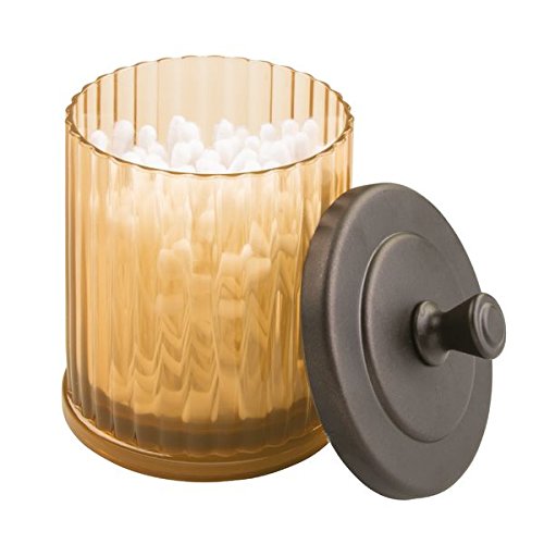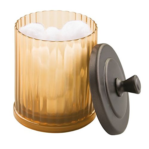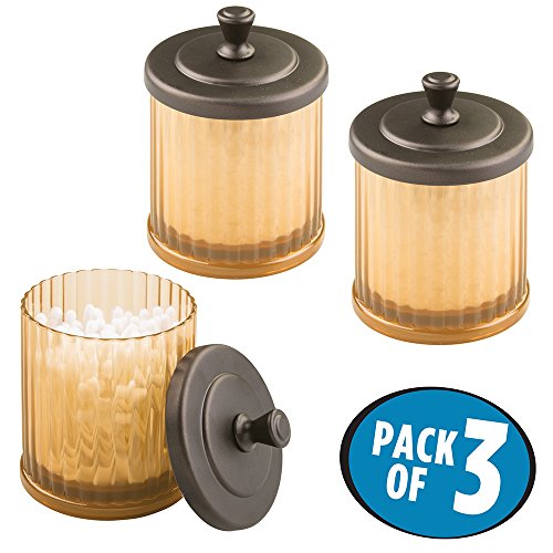 mDesign Bathroom Vanity Storage Organizer Canister Jars for Q tips, Cotton Swabs, Cotton Rounds, Cotton Balls, Makeup Sponges, Bath Salts - Pack of 3, Amber/Bronze