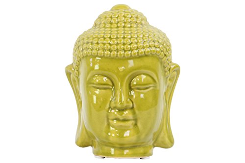 Urban Trends Ceramic Buddha Head with Rounded Ushnisha, Gloss Green