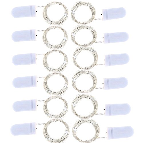 Dreamworth Pack of 12 LED Moon Lights 30 Micro Starry LEDs on Silver Extra Thin Copper Wire, 2 x CR2032 Batteries Included, 10 Ft (3m) for DIY Wedding Centerpiece or Table Decorations (Warm White)