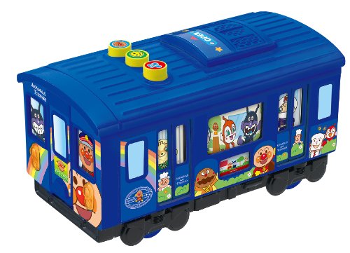 屋根をスライドさせると窓の絵が変わります。ボタンを押すとアンパンマンのマーチやおしゃべりをします。瀬戸大橋を走っているアンパンマントロッコと同じデザインです。