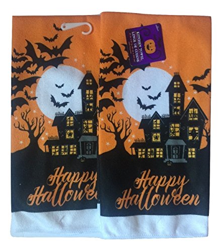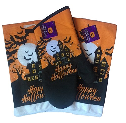 Halloween Kitchen Decorations Dish Towels Pot Holder Spooky Orange Black White