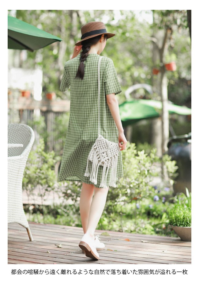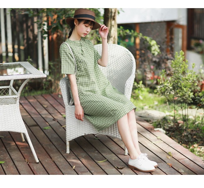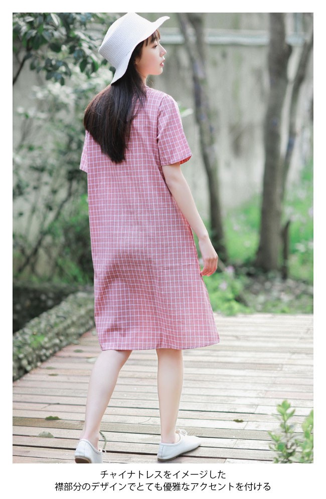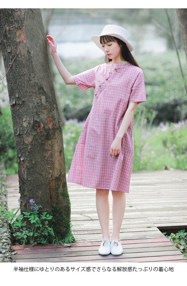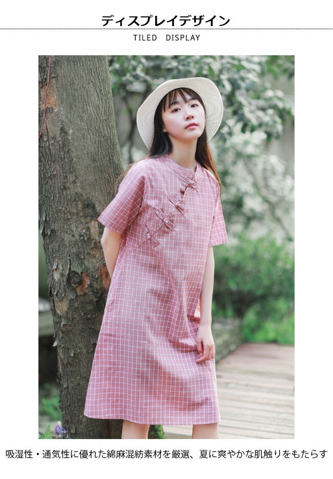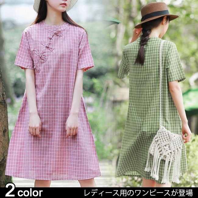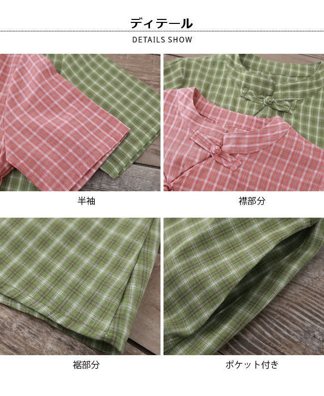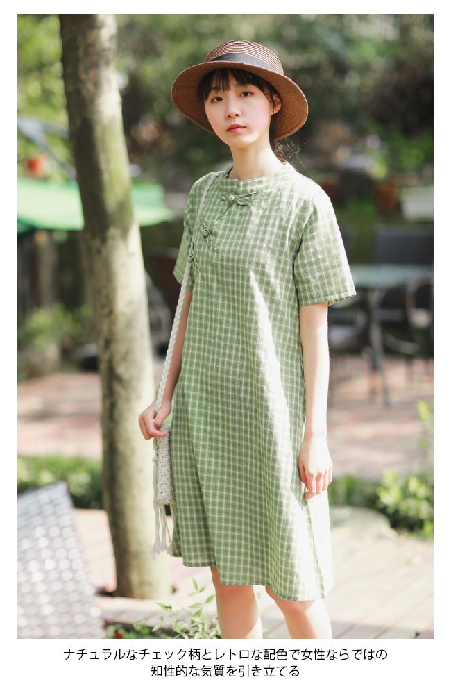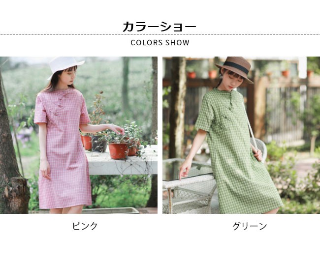 ワンピース 半袖 膝丈 チャイナドレス チェック柄 膝丈ワンピース レトロ チャイナ服 半袖ワンピース ミディアム丈 女性用 夏物 薄手レディース用のワンピースが登場吸湿性・通気性に優れた綿麻混紡素材を厳選、夏に爽やかな肌触りをもたらす半袖仕様にゆとりのあるサイズ感でさらなる解放感たっぷりの着心地チャイナトレスをイメージした襟部分のデザインでとても優雅なアクセントを付けるナチュラルなチェック柄とレトロな配色で女性ならではの知性的な気質を引き立てる都会の喧騒から遠く離れるような自然で落ち着いた雰囲気が溢れる一枚カラー:ピンク グリーン素材 綿麻混紡サイズ(cm) M L XL 2XLM 総丈100 バスト94 肩幅37L 総丈101 バスト98 肩幅38XL 総丈102 バスト102 肩幅392XL 総丈103 バスト106 肩幅40ご注意:※サイズは平置きサイズです。素人採寸ですので、若干の誤差がございます、ご了承ください。