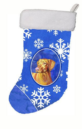 Caroline's Treasures Vizsla Winter Snowflakes Holiday Christmas Stocking, 11 x 18", Multicolor