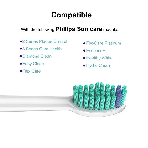 -. Feature : High quality Generic Replacement Brush Heads made with end-rounded US Dupont Tynex Nylon Bristles for offer exceptional cleaning of tooth surface and deep between the teeth. / The Beauty Care toothbrush heads are proven to reduce gingivitis up to 100% better than a manual toothbrush,effectively removes plaque without irritating gums. / The Beauty Care Replacement Brush Heads Compatible with Philips Sonicare FlexCare, EasyClean, HealthyWhite, Diamond Clean and Kids Brush Handles. (Complete list in Description below) / Blue indicator bristles fade halfway so you know when to replace your brush.(Dentists recommend replace the brush head at least once every 3 months) Dental Association. / The 4 Replacement brush heads come with caps for hygienic storage and travel, 100% Satisfaction Guaranteed or Your Money Back.