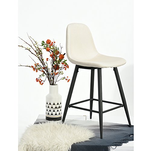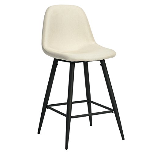 -. Title : Set of 2 Mid-Century Style Counter Height Barstool Metal Legs Beige Fabric Cushion Seat and Back for Dining Room Bar Pub Chairs