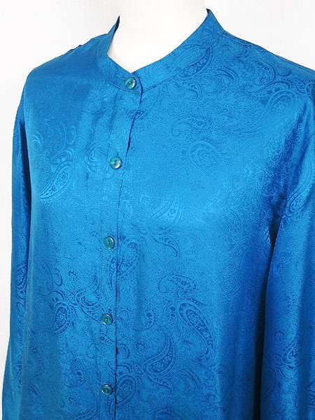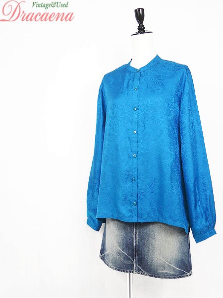Ladies ブランド- カラー青 メール便不可 コンディション★★★ 素材シルク 表記サイズS 実寸サイズ 着丈 62 cm 身幅 53 cm 肩幅 40 cm 袖丈 58 cm ※ウエスト・ヒップ以外は平置き採寸