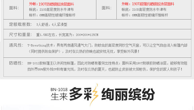Inner tent material: 210T polyester fabric