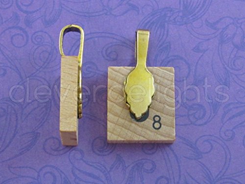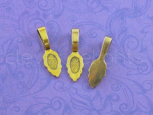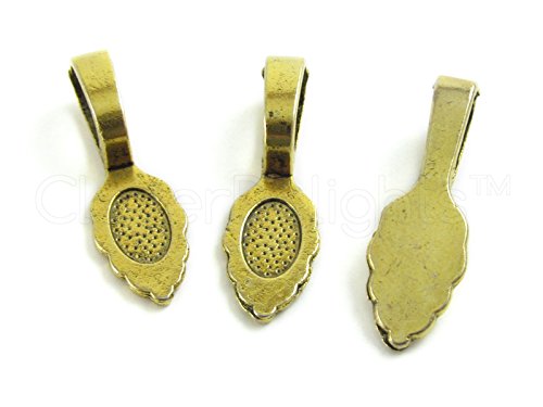 25 CleverDelights Leaf Bails - 26x8mm - Antique Gold Color - Large Glue On Bails - Scrabble Glass Pendants Scallop Edge Tibetan Bails - 1 x 5/16 inch 26mm x 8mm
