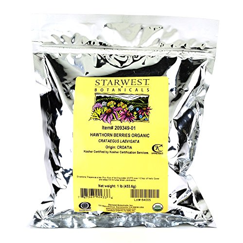 -. Binding : Health and Beauty -. Brand : Starwest Botanicals -. EAN : 0811366077373 -. Feature : Latin/Botanical Name: Crataegus laevigata / Origin: Croatia / Certified Organic by QAI - In accordance with the USDA National Organic Program Guidelines / Kosher Certified by Kosher Certification Services / cGMP Compliant (current Good Manufacturing Practices) -. IsAdultProduct : 0 -. Label : Starwest Botanicals, Inc. -. LegalDisclaimer : **Satisfaction Guarantee If you are not 100% satisfied with your order, be assured that, with your assistance, we will resolve the problem or promptly issuing a refund, credit, or replacement. However we do not refund shipping charges. Provide your order number and reason for the return by contacting us through Amazon's messaging service to obtain an RMA number which must be marked on the outside of each return package. No credit or returns are allowed after 60 days from the invoice date. -. Manufacturer : Starwest Botanicals, Inc. -. Model : 767963024336 -. MPN : 767963024336 -. NumberOfItems : 1 -. PackageQuantity : 1 -. PartNumber : 767963024336 -. ProductGroup : Grocery -. ProductTypeName : GROCERY -. Publisher : Starwest Botanicals, Inc. -. Size : 1 pound -. Studio : Starwest Botanicals, Inc. -. Title : Starwest Botanicals Organic Hawthorn Berries Whole, 1 Pound -. UPC : 767963024336