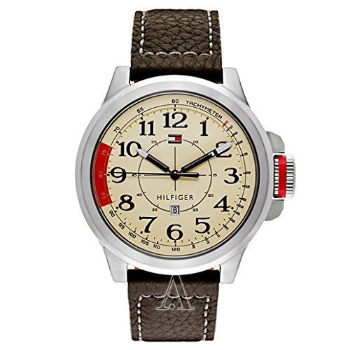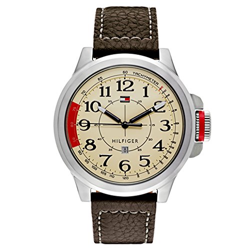 TOMMY HILFIGER 1790844 STAINLESS STEEL SPORT WATCH WITH LEATHER BAND