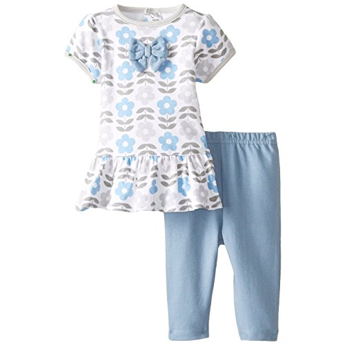 -. Title : BON BEBE Baby-Girls Newborn Blue Flower 2 Piece Dress and Knit Denim Jegging Set