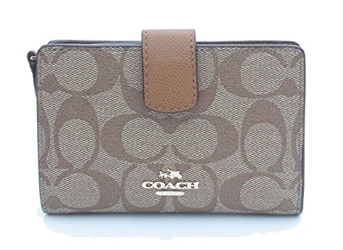 -. Feature : Signature coated canvas in Khaki Saddle / Snap and zipper closure / Inside features 6 card slots, 1 ID window, multiple slip pockets, full length bill compartment / Exterior back features zip compartment / Approx. 5.25" (L) x 3.5" (H) x 1.25" (W)