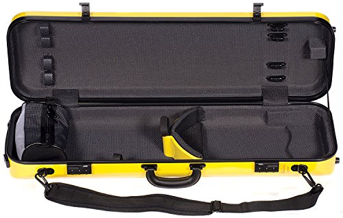 -. Feature : For 4/4 Violin / Beautiful Yellow Finish - 4-Layer Shell - ABS and Polyurethane Exterior Construction - Weather Resistant Seal / Polystyrene and Polyurethane Interior Construction - Plush Polyester Interior - Instrument Suspension / Small Accessory Pouch - 4 Bow Holders - Velcro Neck Restraint - Tail Block Sponge - 2 Neoprene Shoulder Straps - D-Rings for Backpack Carrying Option / Extremely Light Weight: 4lbs (1.8 kg)