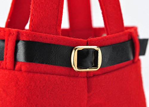 1.Dress up holiday gifts and treats in classic Santa style.Can be filled with anything from candy to gifts.Reusable, made from felt, can be washed and air dry.