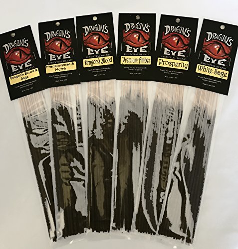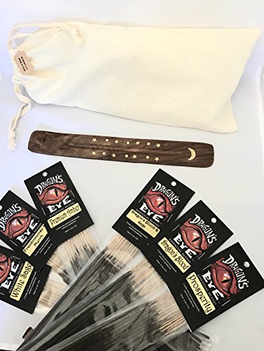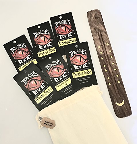 Premium Dragon’s Eye Incense Sticks, 6 Best Selling Scents, Dragon’s Blood, Dragon’s Blood & Sage, Frankincense & Myrrh, White Sage, Prosperity, Premium Amber. Attractive Wood with Inlay Ash Catcher.