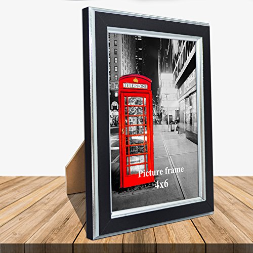 This small photo frame sets feature a solid composite wood frame construction with silver edge finish. The photo frame will safely showcase and preserve your pictures, poster, travel souvenirs, painting.
