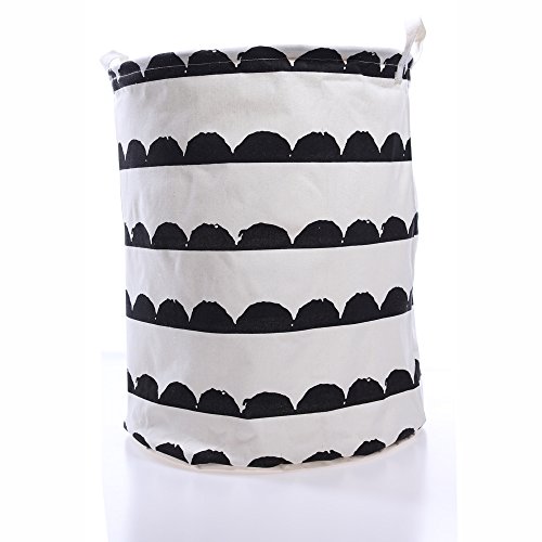 19.7" Large Laundry Hamper Bucket Waterproof Coating Cotton Linen Laundry Basket Collapsible Washing Basket Canvas Storage Basket Bin Home Nursery Toy Organizer (Black Half Circle)
