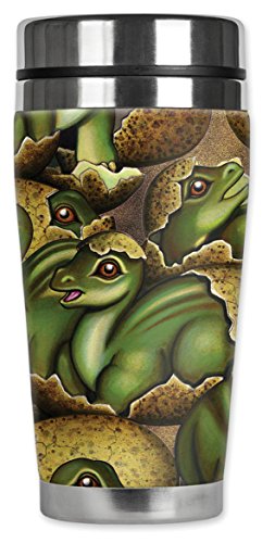 Mugzie 639-MAX "Baby Dinosaurs" Stainless Steel Travel Mug with Insulated Wetsuit Cover, 20 oz, Black