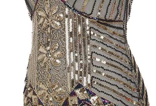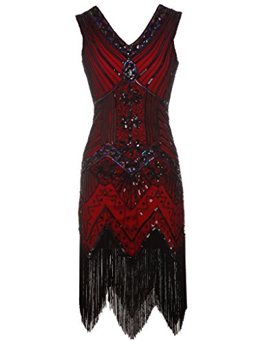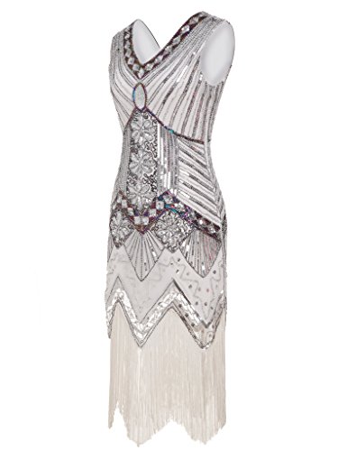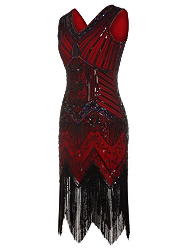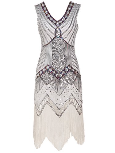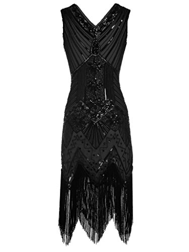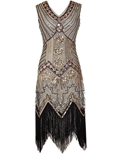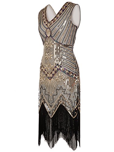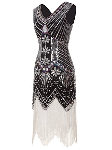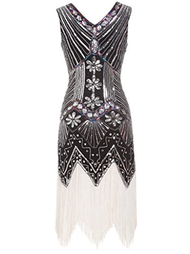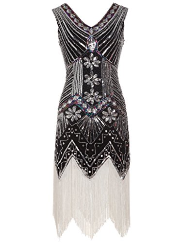 FAIRY COUPLE 1920 Flapper doppelte V-Ausschnitt Pailletten Strass verschonert fransen Kleid D20S003