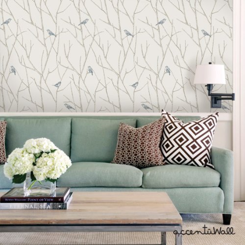 - Feature : Simple Shapes presents Accentuall - a new line of premium wallpaper. / Branch Birds Blue Peel & Stick Fabric Wallpaper Repositionable / Fabric removable reuseable wallpaper. / What is Included: (ONE) 24"w x 48"h sheet ; Pattern Repeat Length: Every 48''. / DIY room makeovers without the mess and headaches of traditional wallpaper.