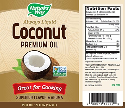 Nature's Way Coconut Premium Oil Great for Cooking in sauces, drips, dressings, smoothies, drizzling over popcorn and more!
