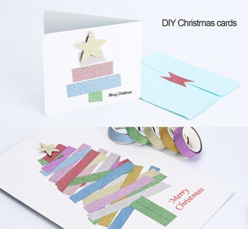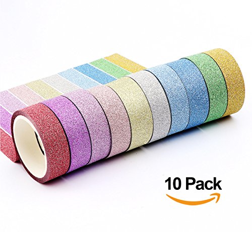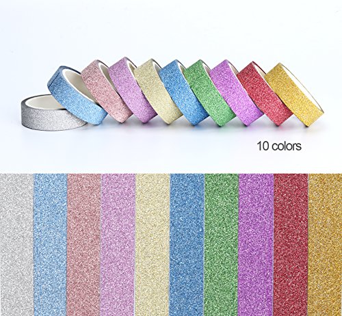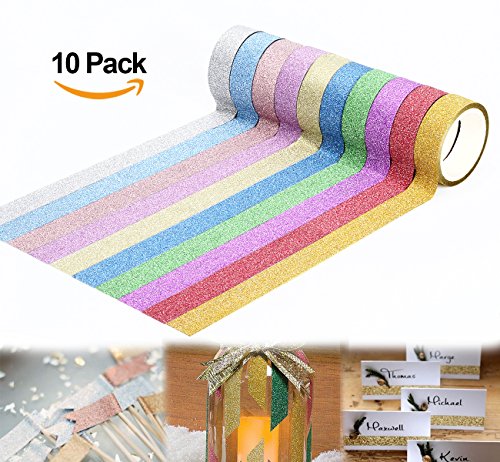 ilauke Glitter Sparkle Washi Tape for Christmas Gift Wrapping Adhesive Masking Decorative DIY Tape 10xRolls(1.5CMx5M)