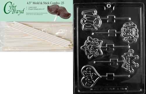 Cybrtrayd 45St25-K135 Girly Pops Diva, Princess, An Kids Chocolate Candy Mold with 25 Cybrtrayd 4.5-Inch Lollipop Sticks