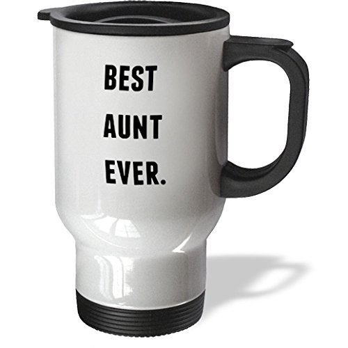3dRose tm_213361_1 Best Aunt Ever, Black Letters on a White Background Stainless Steel Travel Mug, 14 oz, White