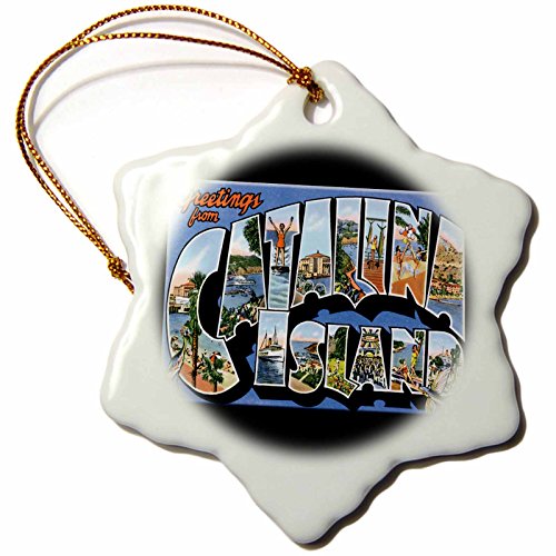 3dRose orn_160725_1 Greetings From Catalina Island with Bold Letters Holding Scenes From The Island Porcelain Snowflake Ornament, 3-Inch