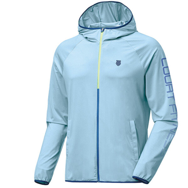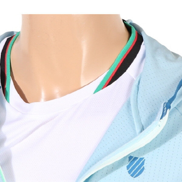 스판성이 우수하고 통풍이 잘되는 폴리스판소재의 여릉 후드집업 형태의 트레이닝 자켓.얇고 가벼운 원단운 사용하여 시원하며 등판이 매쉬소재로 되어 있어 통기성이 우수하여 각종 스포츠 활동에 적합함.부피감이 적어 야간 쌀쌀한 기온변화를 대비하여 비상용으로도 적합함.