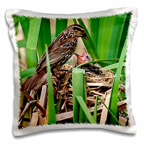 3dRose Red Wing black Bird Feeding Young, Pennsylvania - Na02 Dno0925 - David Northcott - pillow Case, 16 by 16-Inch (pc_140208_1)