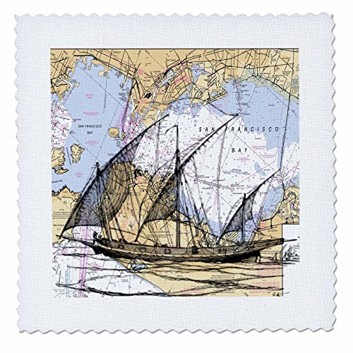 3dRose qs_204895_5 Print of San Francisco Bay with Ghost Ship Quilt Square, 14 by 14"