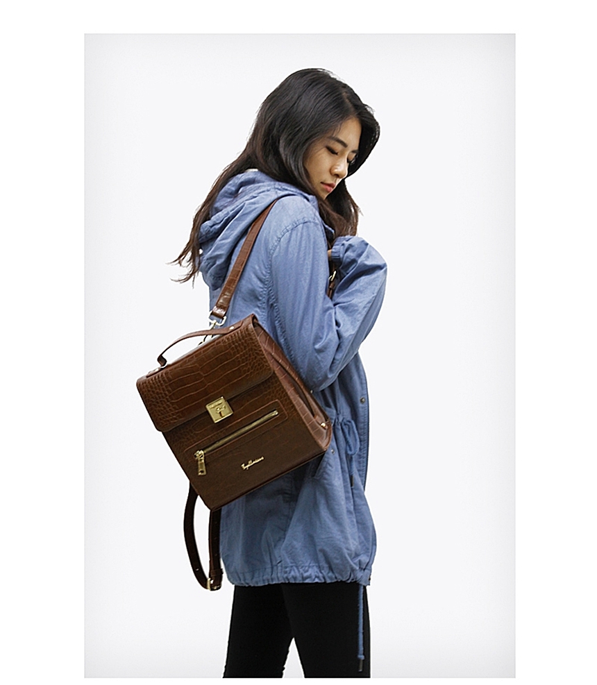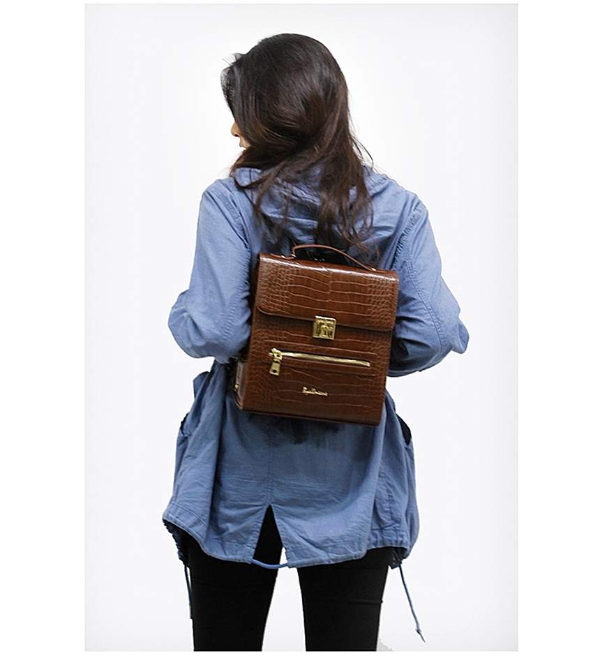 Hard Square Leather Backpack 301SSB Women's College