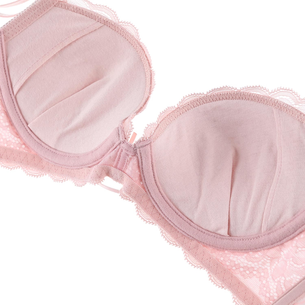 19SS 발렌타인 시즌 컬러 LINE. 플라워 가든을 연상 시키는 소프트한 핑크 컬러와 레이스가 로맨틱하고 사랑스러운 제품. 코르셋 디테일과 어깨끈의 스트링 디자인이 포인트.