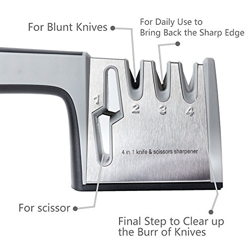 4 in 1 Knife and Scissor Sharpener---- premium quality 4 in 1 knife sharpening system for kitchen, sport, pocket, hunting, fishing, carving knives & shears, scissor | tools & gadgets that every home should have