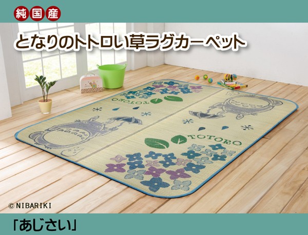 【商品名】純国産 となりのトトロ い草ラグ 『あじさい』 約140×200cm
