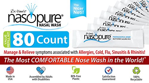 Studio : Dr. Hana's Nasopure Publisher : Dr. Hana's Nasopure Binding : Health and Beauty Product Description The Magic is in the Mix - Nasopure buffered salt reduces the burning and/or irritation commonly felt with other salt mixes. With a pH balanced alkaline solution, Nasopure buffered salt allows the user to make an isotonic or hypertonic natural solution - Hypertonic natural solution is saltier than the body, highly concentrated and most effective while Isotonic natural solution is as salty as the body, effective yet gentle. Made with pharmaceutical grade ingredients (Sodium Chloride and Sodium Bicarbonate) with no additives, preservatives or fragrances 0