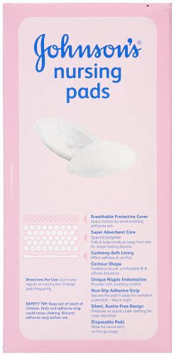 Enjoy confident protection and complete discretion with JOHNSON'S Nursing Pads, designed to absorb moisture and protect against leaks between feedings. The breathable protective cover helps keep clothes dry while allowing air to flow to the skin. The cushion-soft pads are soft and absorbent with a special polymer core, which wicks moisture and locks it away for lasting dryness. The exclusive contour shape with nonslip adhesive and rustle-free design offers comfortable, secure, and quiet wear. Breathable, protective backing helps clothes and skin stay dry.